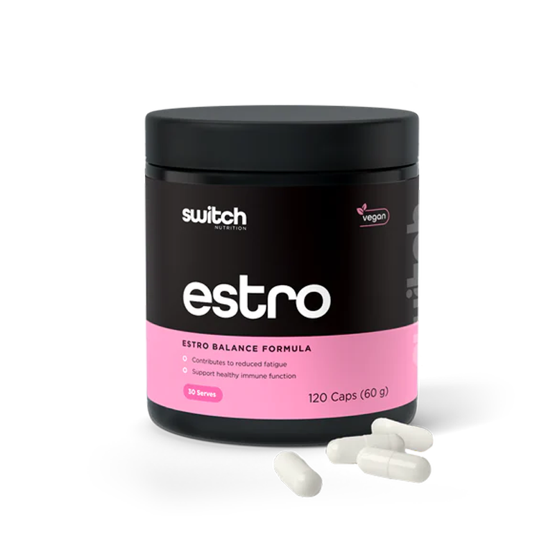 Estro Switch combines the perfect blend of ingredients to provide you with a natural balance. A unique synergy of concentrated herbal extracts, vitamins, minerals and amino acids that support a healthy hormone profile. Estro Switch may help support normal energy function while reducing tiredness and fatigue.